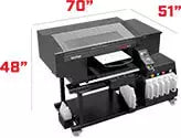 Ink Capacity 7.2 L white ink tank and 4.3L CMYK ink tanks.